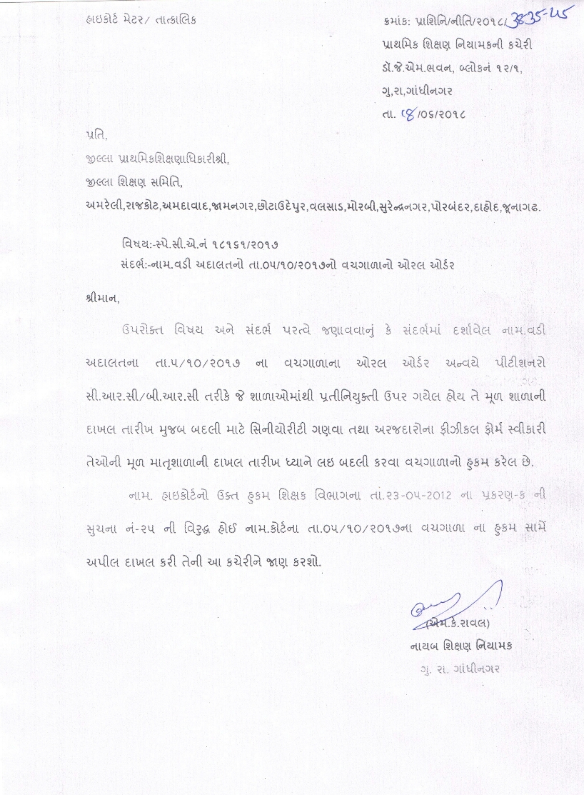 CRC BRC SENIORITY BABAT HIGH COURT RELATED PARIPATRA DATE-18-6-2018.